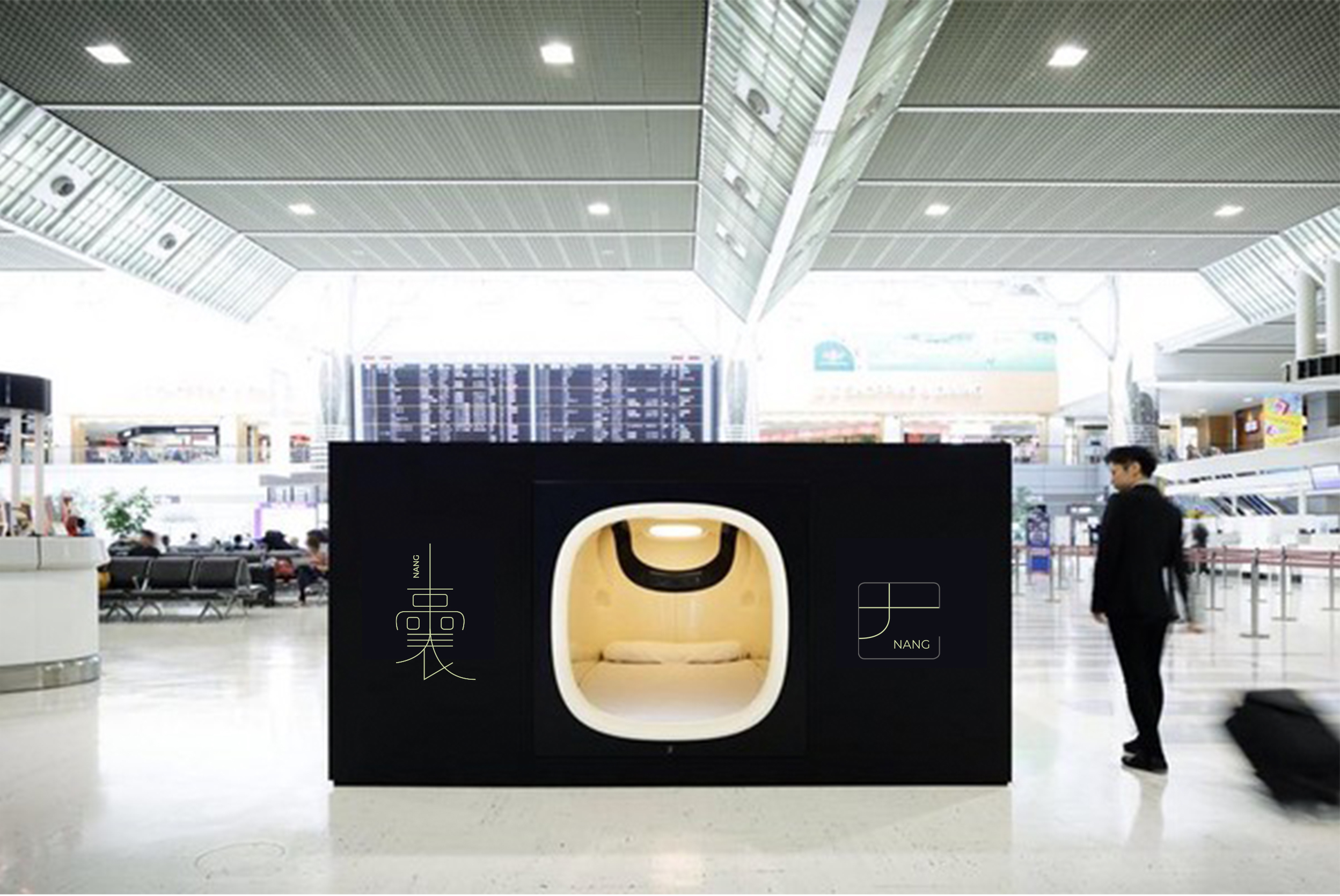 囊NANG is a creative branding project. The hotel rooms are single beds with no additional furniture. NANG means capsule in Chinese character. We often relate capsule to medicine, which cures the sickness. NANG have their mission to provide visitors space to recharge and heal their tired body and soul.